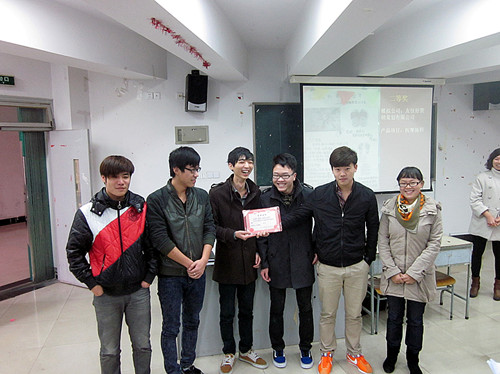 其次,大会就2012年11月15日举行的产品策划大赛进行了颁奖典礼,本次产品策划大赛共评选出一等奖一名、二等奖两名和三等奖两名。11级市场营销(1)班杨婵婵等同学策划的“宝贝球”项目荣获一等奖。11市场营销(1)班章增兴等同学策划的“按摩拖鞋”项目和潘文武等同学策划的“U盘手带”项目荣获二等奖。11市场营销(1)班叶瑶瑶等同学策划的“USB暖脚鞋”和11市场营销(2)班叶艳君等同学策划的“星座咖啡”项目荣获三等奖。商务系李庆海主任为一等奖获得者颁奖;物流教研室主任钟燕老师为二等奖获得者颁奖;市场营销教研室主任陈维维老师为三等奖获得者颁奖。接着,市场营销教研室主任陈维维老师对产品策划大赛做了总结,并鼓励学生在促销策划大赛中能够再接再厉,表现出市场开发与营销专业学子的风采。