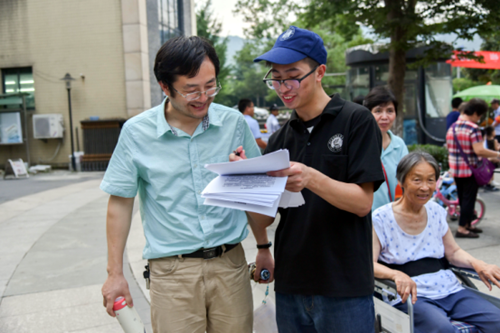 志愿者与社区居民沟通交流